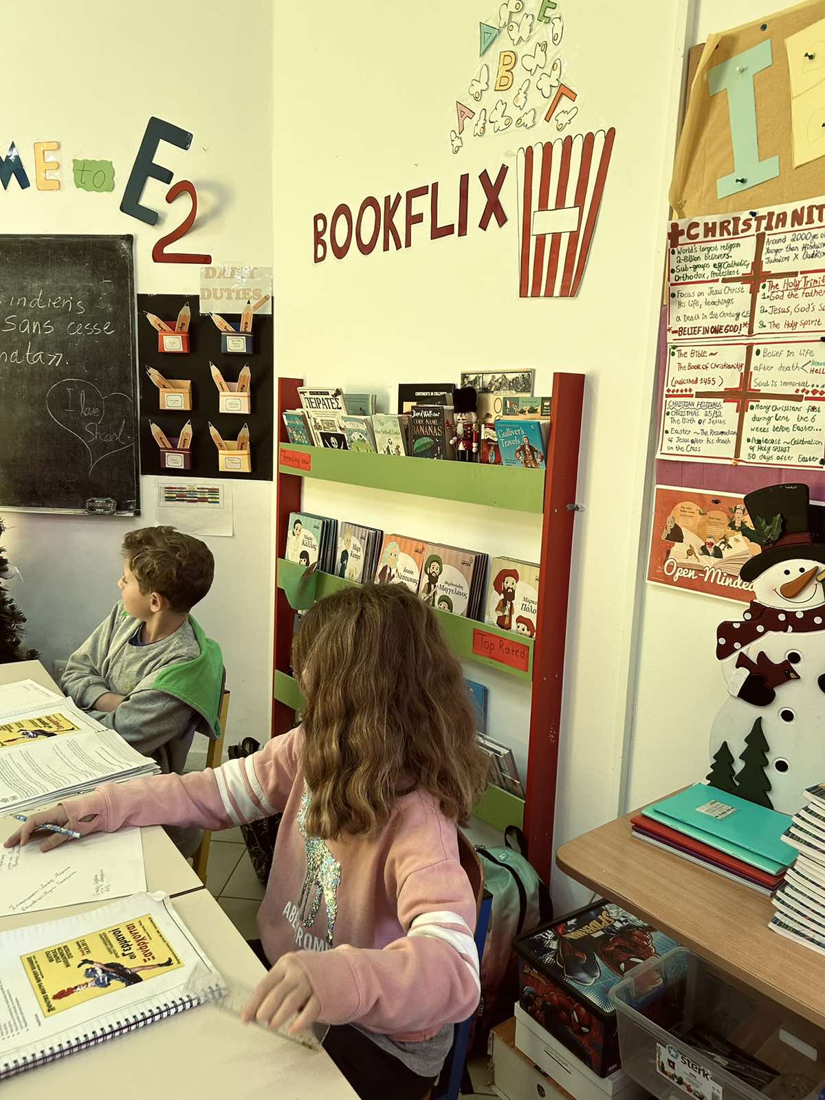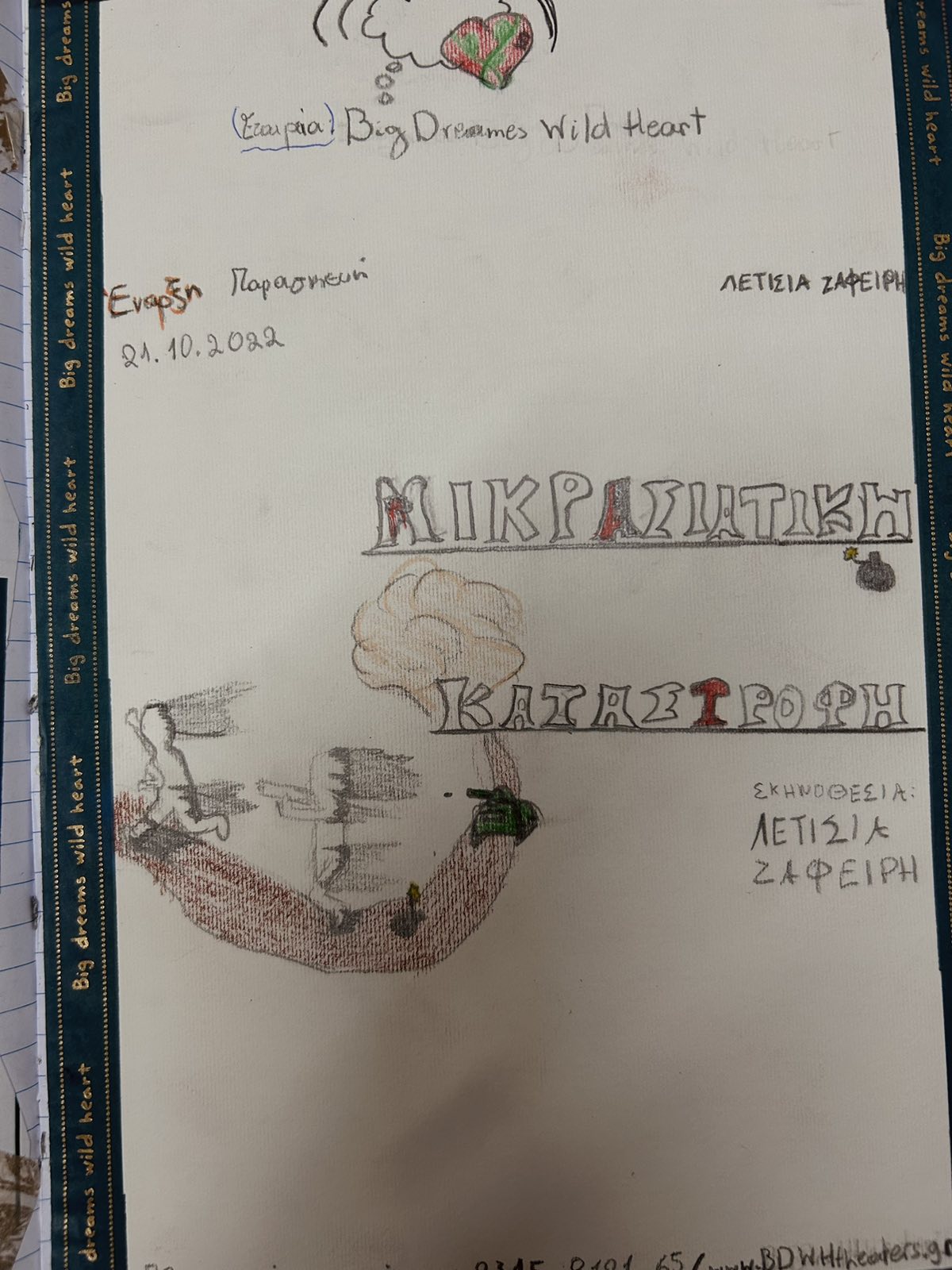 «Меня зовут Алиса Маги. Но если я спешу вам представиться, это не значит, что я еще и главная героиня. Я рассказчик». Учащиеся 5-го класса прочитали отрывок из книги Дидоса Сотириу «В пламя». Обсуждая исторические события того времени, а также Малоазийскую катастрофу, они делились с одноклассниками актуальными историями своих предков. Текст Дидоса Сотириу вдохновил их на уроках творческого письма на создание плакатов театральных представлений с антивоенными посланиями, исследование различных типов письма и текстовых жанров.